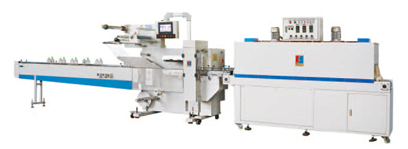 自動瓶裝線套膜包裝機,該機集自動進瓶、倒瓶、包裝、收縮為一體。實現了從灌裝生產線到套膜包裝的自動化操作。